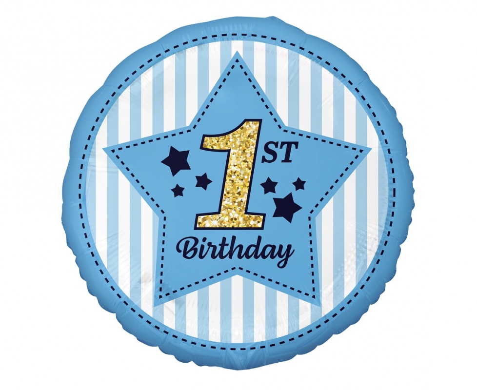 Balon foliowy Cyfra 1, 1st Birthday, niebieski, 18 cali